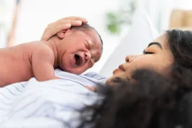 - Reageer op je baby als die huilt. Bijvoorbeeld: leg je baby aan je borst, geef een schone luier, houd je baby tegen je aan of laat je baby boeren.