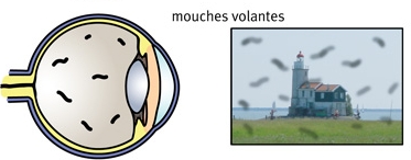 Die klontjes ziet u als zwarte, zwevende vlekjes.