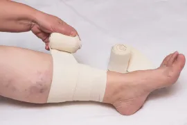 - Na het drukverband is het belangrijk om steunkousen te dragen.