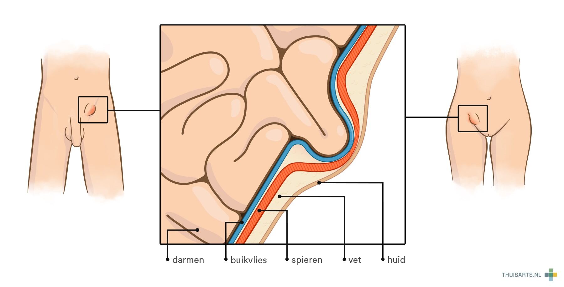 Tekening van een liesbreuk