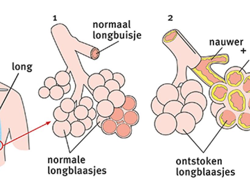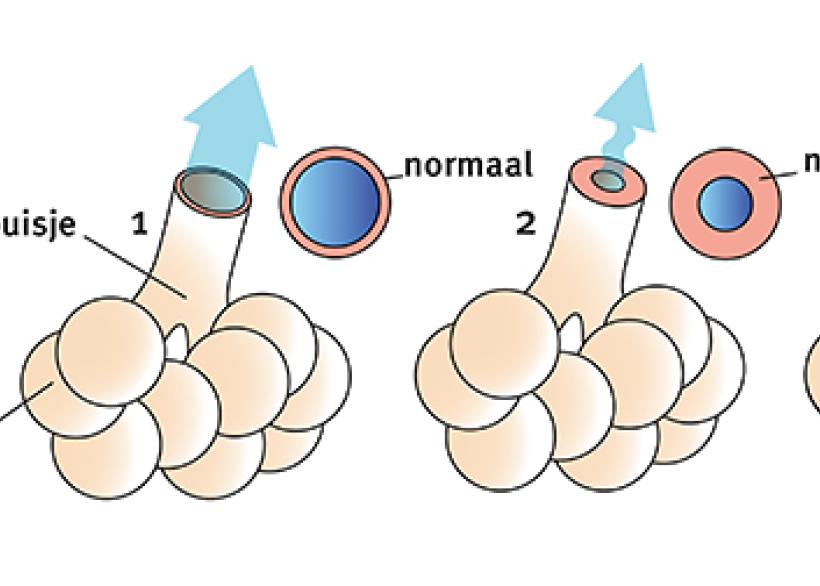 Normale, ontstoken en kapotte longblaasjes bij COPD