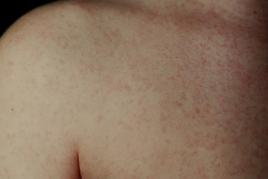 - Uw kind heeft koorts, keelpijn en ruwe plekjes op de huid.