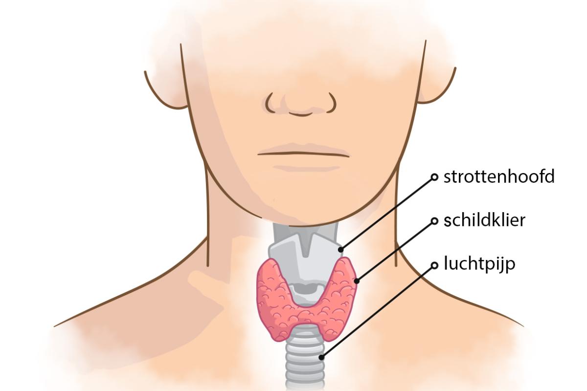 Je schildklier zit in je hals, aan de voorkant van je nek.