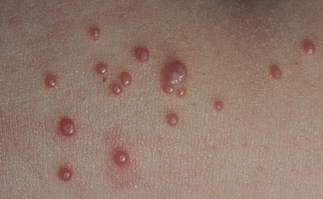- Ze zitten vaak in groepjes op een of meer plekken: op de buik, borst, rug, benen of billen of in de knieholten of de oksels. Ze kunnen ook op het gezicht zitten.